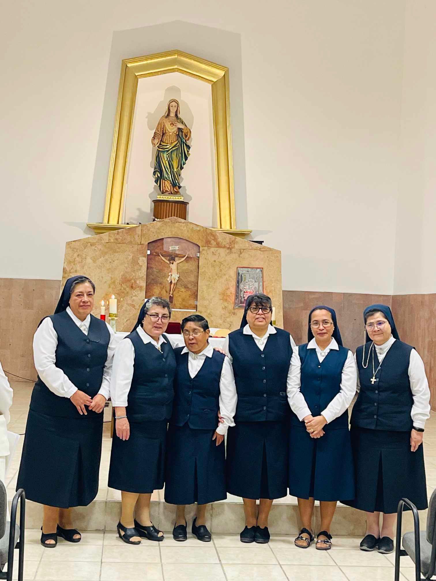 New MPS General Government 2023-2029: M. Melissa Garza, General Superior and Councilors: M. Concepcion Inocencia Toral, Diana Cruz Torres, Sherryl Rivera Marquez, Nohemi Justo (insert photo), Letecia Diaz Paredes and General Economa Lidia Marquez Tello